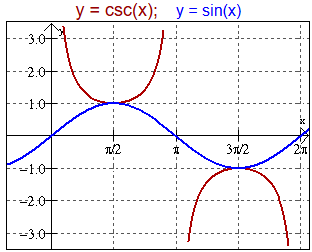 | Cosecant | \( \csc x = \dfrac{1}{\sin x} \) | \( \sin x = 0 \) | ![]() |
