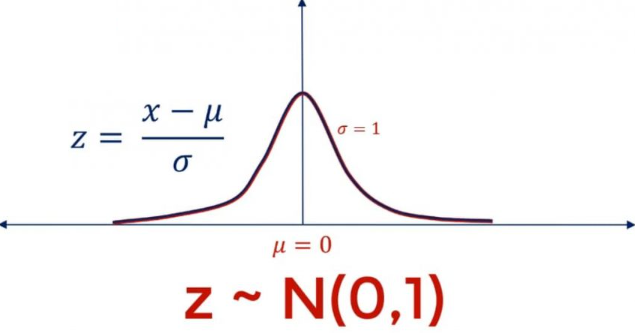 \( Z = \dfrac{X – \mu}{\sigma} \)