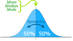 Because of the symmetry, probabilities on either side of the mean are equal.