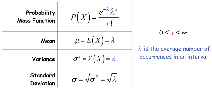 A key feature of the Poisson distribution is that the mean and variance are equal.