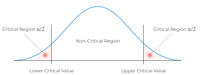 Critical regions lie in both tails of the distribution