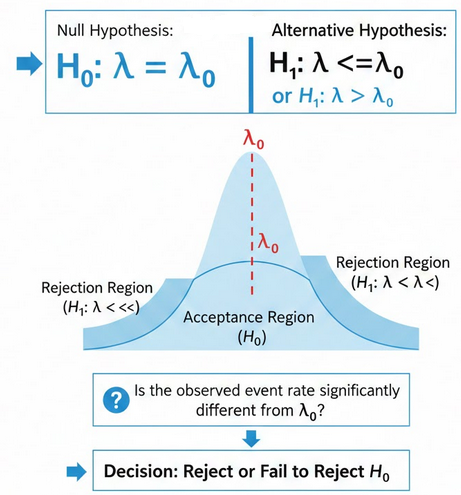 Null hypothesis: \( \mathrm{H_0}:\; \lambda = \lambda_0 \)