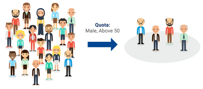 In quota sampling, the population is divided into categories, and a fixed number (quota) of individuals is chosen from each category.
