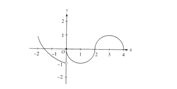 The graph of the function f shown in the figure above has a vertical tangent at the point (2,0) and horizontal tangents at the points (1, -1) and (3,1) . For what values of x, -2<x<4, is f not differentiable?