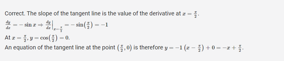 Which of the following is an equation of the line tangent to the graph of y=cosx at \(x=\frac{\pi }{2}\)?