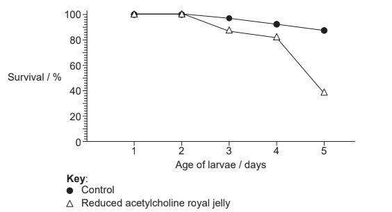 (e) Suggest a reason for the effect of a diet reduced in acetylcholine on the larval survival rate. [1]
