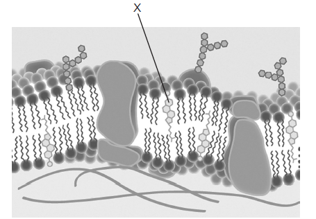 Cholesterol is a type of lipid that is found in the cell membrane. It has a hydroxyl group that can attach to the phosphate head of the phospholipids, and a hydrocarbon tail that can interact with the fatty acid tails of the phospholipids. Cholesterol affects the membrane fluidity by changing the space and interaction between the phospholipids.