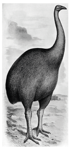 The North Island giant moa (Dinornis novaezelandiae) became extinct sometime between the arrival of humans in New Zealand and the early 19th century.