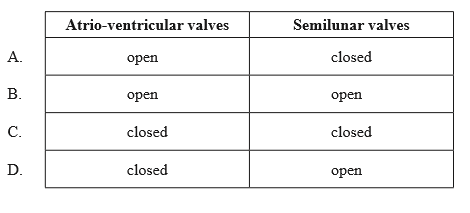 D. Correct – AV valves are closed, and semilunar valves are open—this matches the ejection phase of ventricular systole when the ventricle contracts and pumps blood into the aorta.