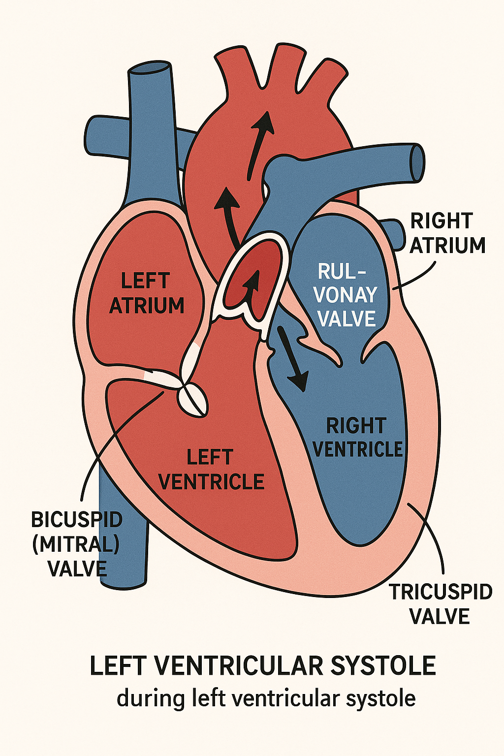 B. Incorrect – Both valves are open, which never occurs in a normal cardiac cycle. This would allow backflow and disrupt one-way flow.