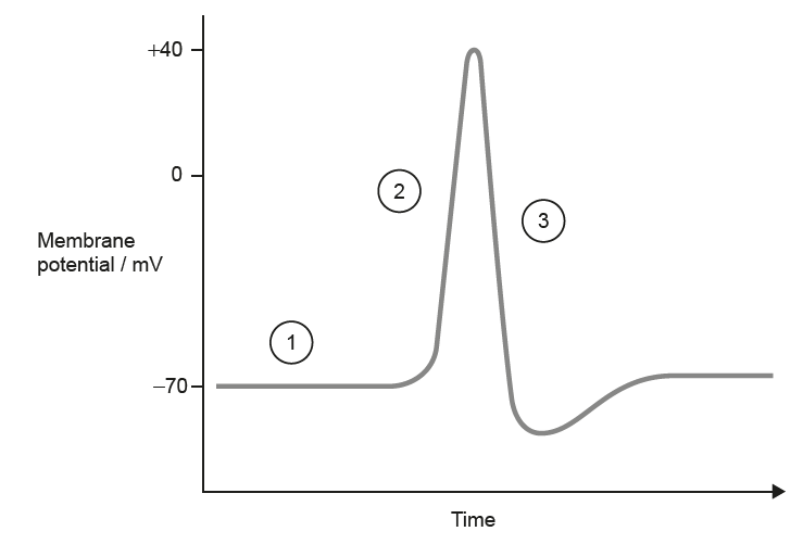 The graph below represents changes in membrane potential during an action potential in a neuron.
