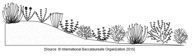 The diagram below shows changing vegetation along a slope in a terrestrial ecosystem.