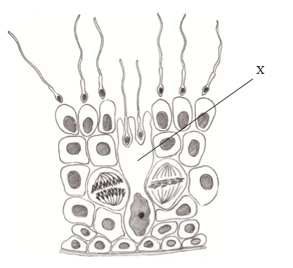 The diagram below shows a small portion of the tissue in a transverse section of a testis.