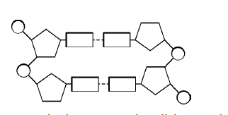 sugar linked to phosphates through correct pentagon corners/(5’–3’) linkages;