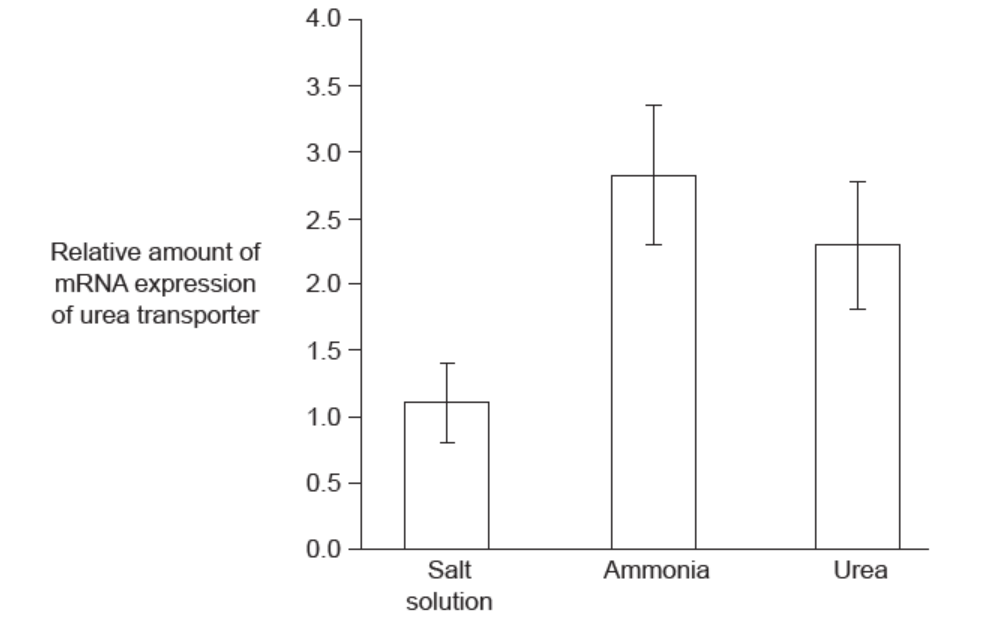 f.ii.Suggest a reason for the greater expression of the gene for the urea transporter after an injection with dissolved ammonia than an injection of urea.[2]