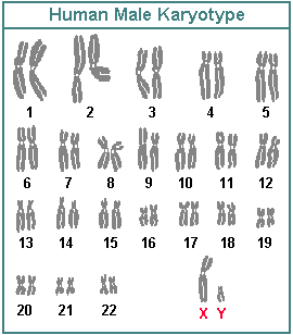The human Y chromosome is one of the two sex chromosomes that determine the biological sex of an individual. It is present only in males, who have one X and one Y chromosome, while females have two X chromosomes. The Y chromosome contains about 55 genes, including the SRY gene, which triggers male development. The Y chromosome contains the genetic information which is not present in the X chromosome. The Y chromosome can also be used to trace the male lineage of a person, as it is only passed down from father to son.