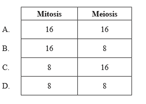 In contrast, meiosis gives rise to four unique daughter cells, each of which has half the number of chromosomes as the parent cell and became 8.