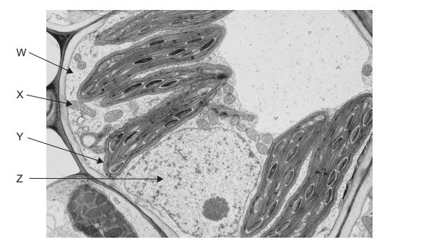 The electron micrograph shows a section through a plant cell.