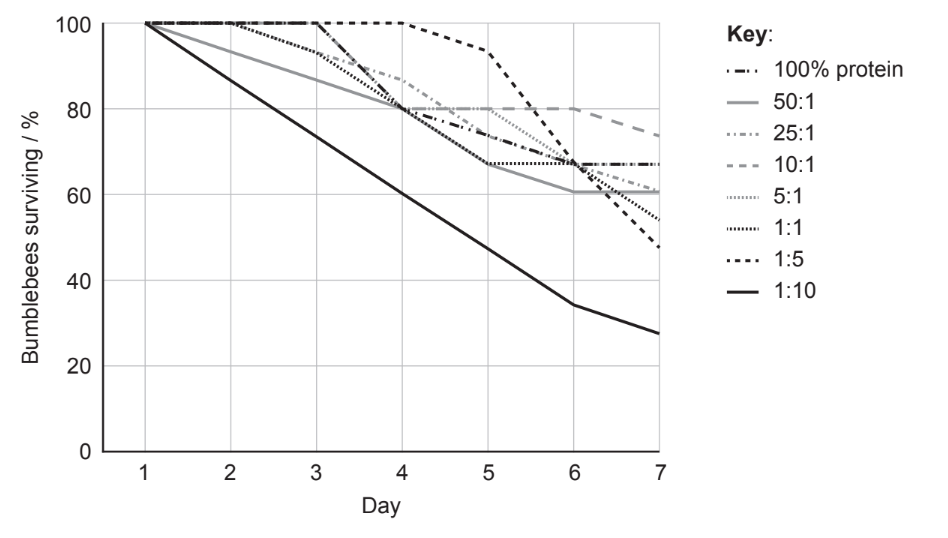 pollen with a different proportion of protein to lipid would reduce survival;