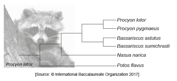 The diagram represents a cladogram of the family Procyonidae.
