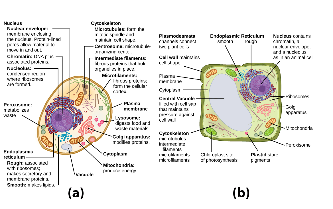 In given reference image: (a) Organelles of animal cell & (b) Organelles of plant cell