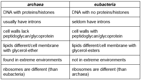 Living organisms have been placed in three domains: archaea, eubacteria and eukaryote. Distinguish archaea from eubacteria.