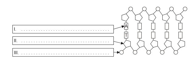 Label the parts of two paired nucleotides in the polynucleotide of DNA.