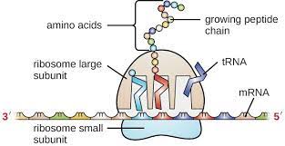 The diagram shows a ribosome and associated mRNA.
