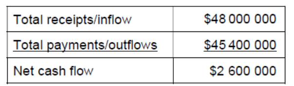 - The candidate refers to the $3 200 000 profit and the $2 600 000 cashflow.