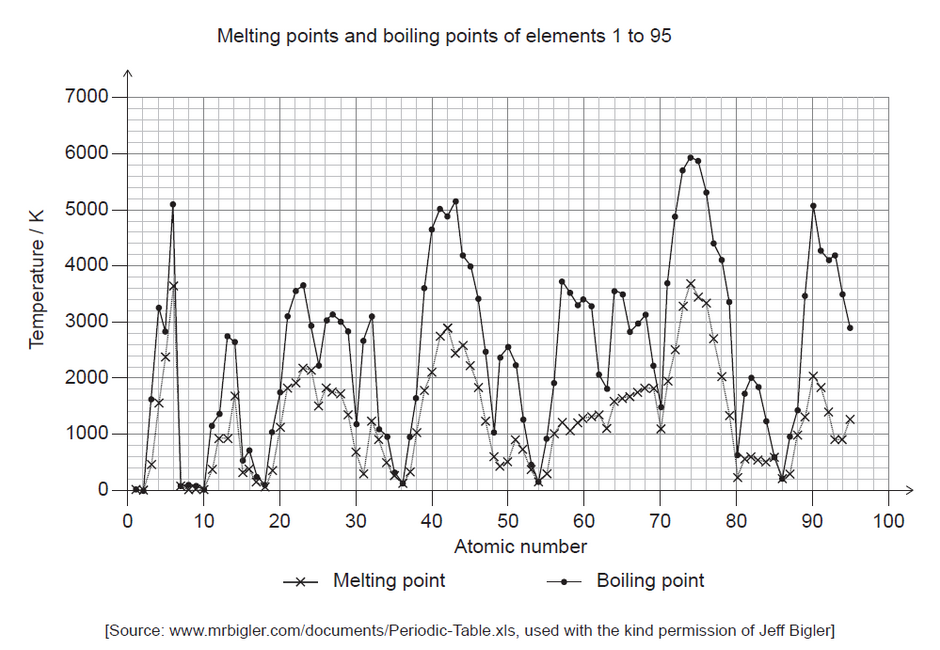 Physical properties of elements vary according to atomic number. Sections 6 to 9 of the data booklet list some of these properties.