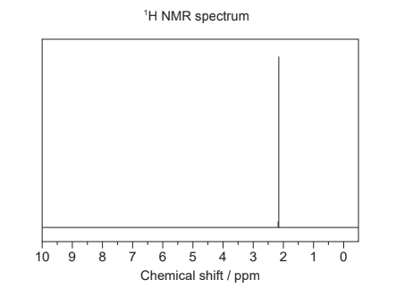 OR «chemical shift of 2.2 indicates» H on C next to carbonyl Compound: propanone/CH3COCH3