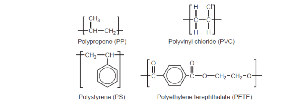 d. Repeating units of several polymers are listed.