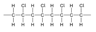 a. Draw a section of isotactic polychloroethene (polyvinylchloride, PVC) showing all the atoms and all the bonds of four monomer units.