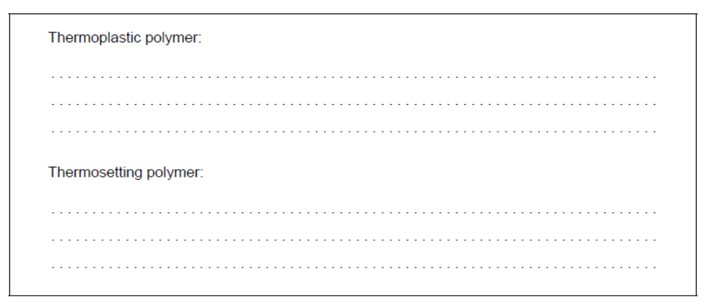 Suggest, giving reasons, which is the thermoplastic polymer and which is the thermosetting polymer.