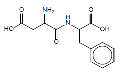 Aspartame is formed from the two amino acids aspartic acid (Asp) and phenylalanine (Phe).
