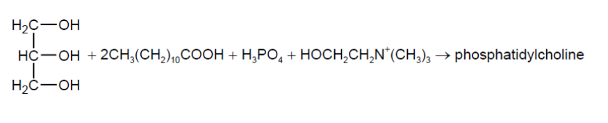 Phosphatidylcholine may be formed from propane-1,2,3-triol, two lauric acid molecules, phosphoric acid and the choline cation.