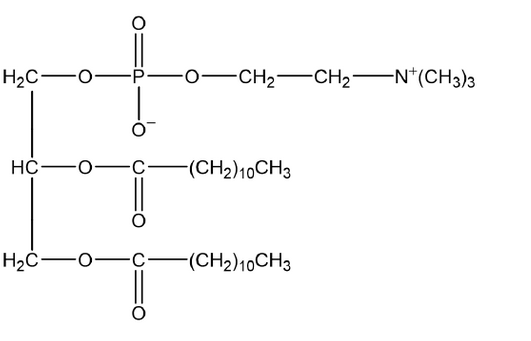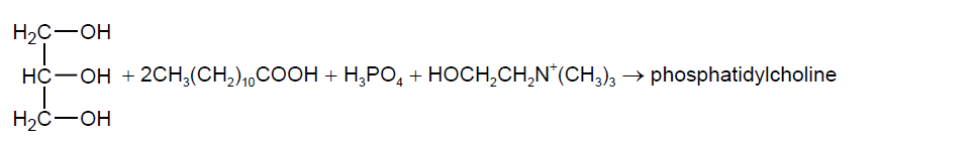 Phosphatidylcholine may be formed from propane-1,2,3-triol, two lauric acid molecules, phosphoric acid and the choline cation.