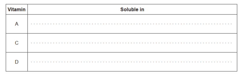 Award [1 max] for “Vitamin A: fat soluble AND Vitamin C: water soluble” with no or incomplete explanation.
