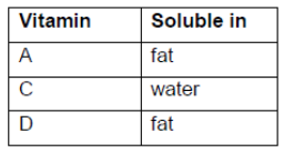 Classify vitamins A, C and D as either mainly fat- or water-soluble, using section 35 of the data booklet.