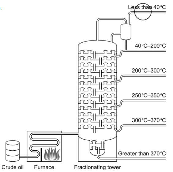 Petroleum contains many hydrocarbons. Explain how these are separated by fractional distillation.