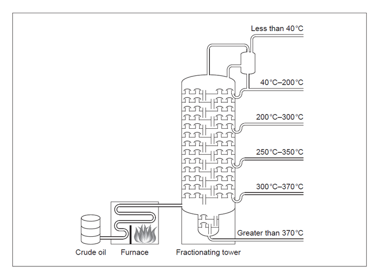 c(ii)_ist the following products, which are also obtained by fractional distillation, according to decreasing volatility: asphalt, diesel, gasoline, lubricating motor oil.
