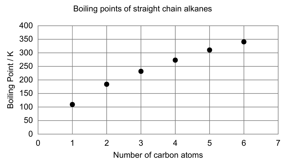 (i) Explain why the boiling point increases from methane to propane. [2]