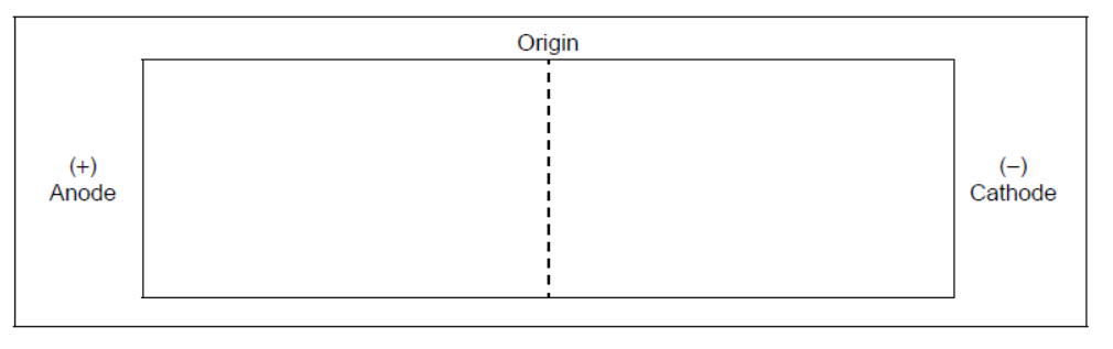 A mixture of amino acids is separated by gel electrophoresis at pH 6.0. The amino acids are then stained with ninhydrin.