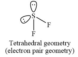 Since the central atom in SF2 has four regions of electron density(2 bond pairs + 2 lone pairs), its molecular geometry will be bent and its electron geometry will be tetrahedral.