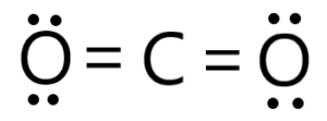In the Lewis structure representation, the carbon atom is in the middle and has two electron pairs and two oxygen atoms around it. Each oxygen atom shares two electrons with the carbon atom through a double bond, resulting in a total of four shared electrons. The remaining two electron pairs on each oxygen atom are unshared (also known as lone pairs).