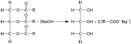 Candidates could not write an equation for the reaction between glycerol and stearic acid to form a triglyceride. Where candidates did write the correct equation they often did not balance the equation correctly.