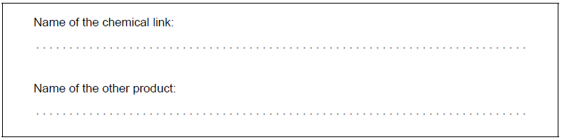 Fatty acids react with glycerol to form fats and oils. State the name of the chemical link formed in this reaction and the name of the other product.
