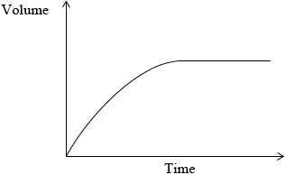 The rate of this reaction in (a) (ii), can be studied by measuring the volume of gas collected over a period of time. Sketch a graph which shows how the volume of gas collected changes with time.[1]