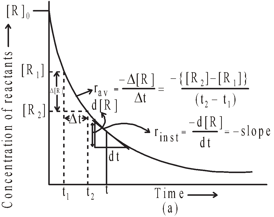 As the reaction progresses the concentration of reactants keeps on falling. Hence the rate of reaction keeps on falling with time. The rate of reaction at any given instant will be given by the expression