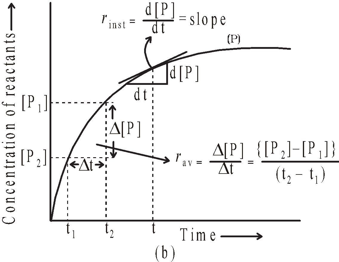 - The graphs between concentration of any reactant Vs. time or concentration of any product Vs. time are plotted. The slope of the tangent to the curve gives the rate of reaction at that time.